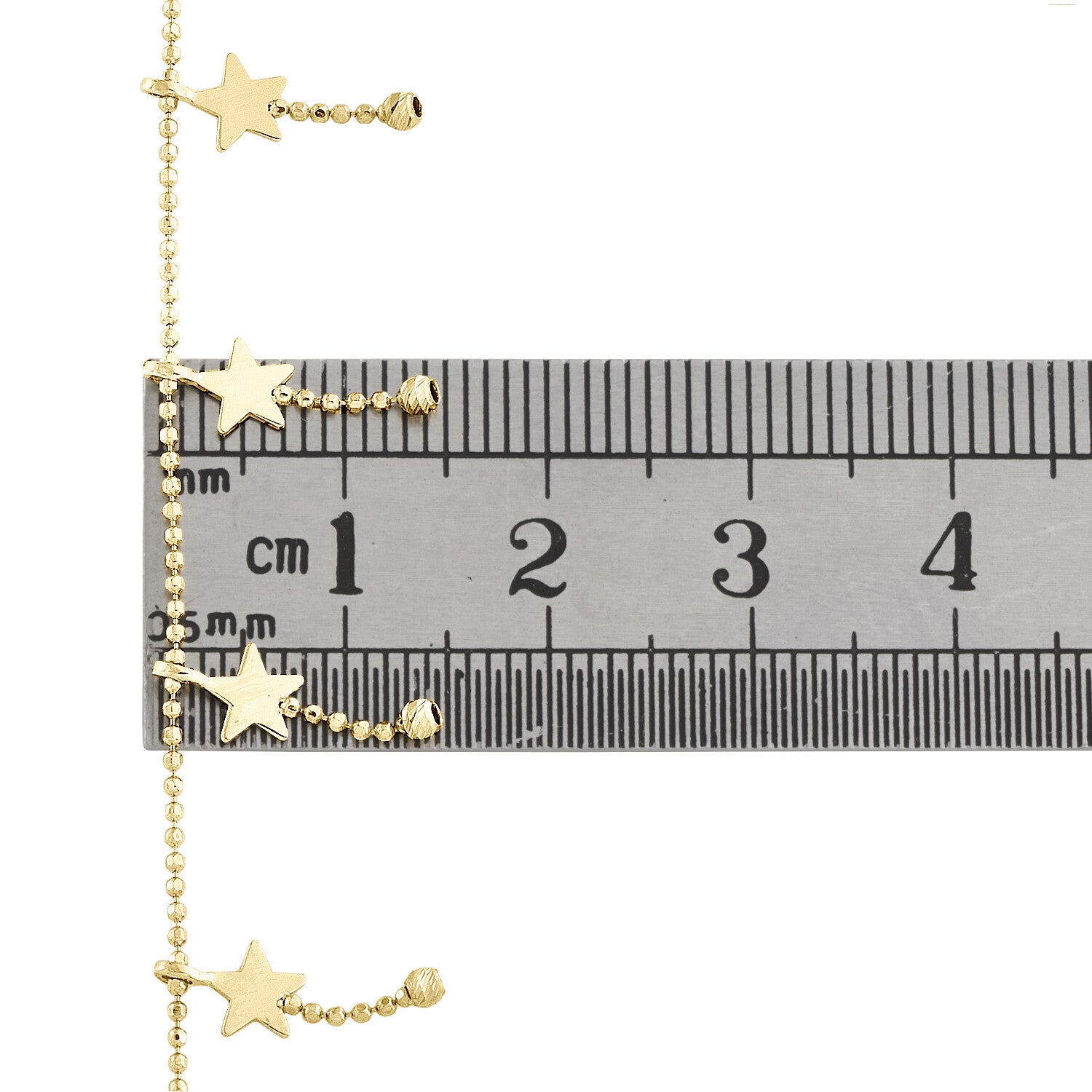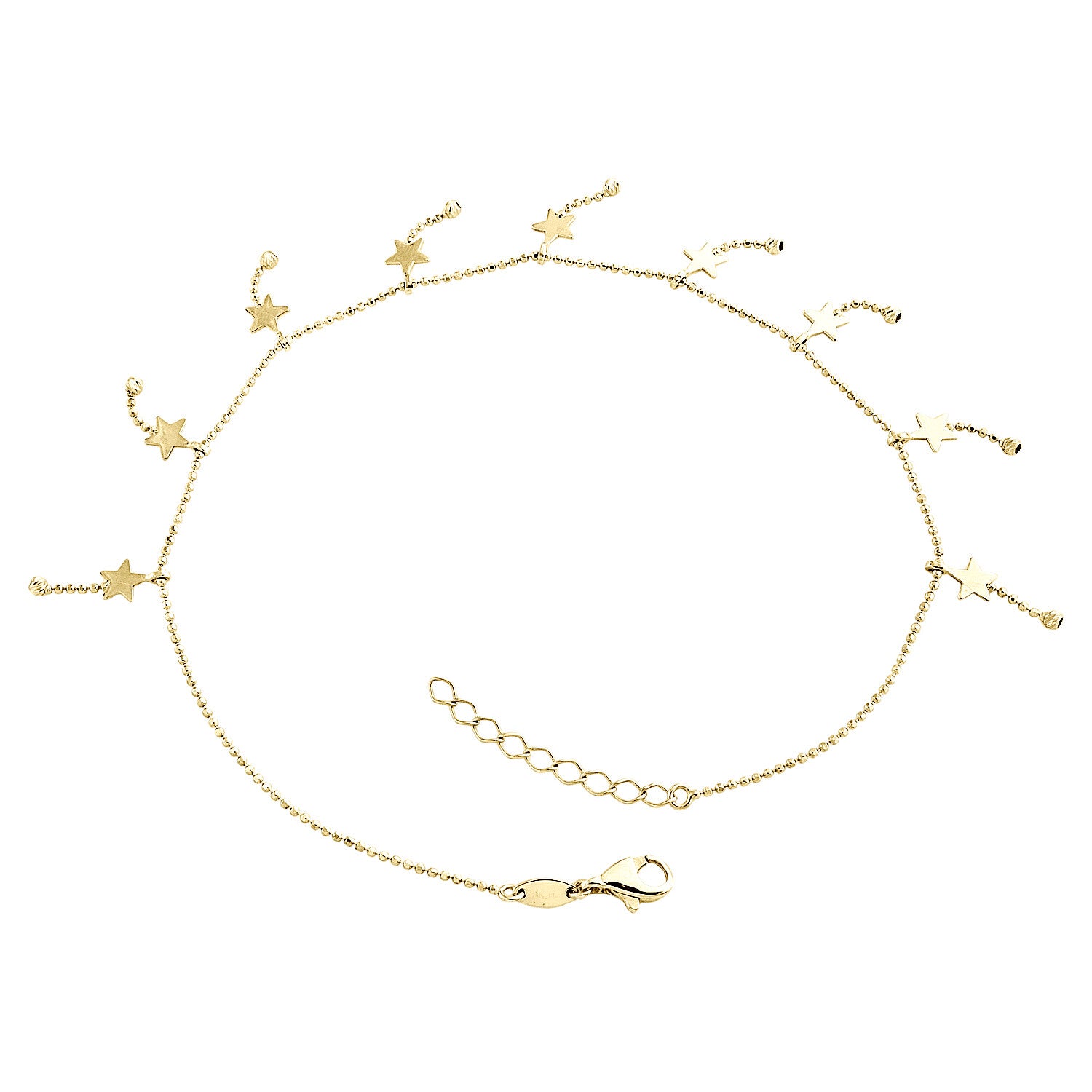 14K Yellow Gold Fancy Bead Link Chain Statement 14mm Star Charm Anklet 9"+1" Ext