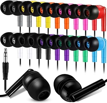 Kanayu 100 Pack Wired Earbuds Bulk for Classroom Ear Headphones Basic Student No Microphone with 3.5MM Jack Class Laptop School Library, Individually Bagged (Multicolor) 243603
