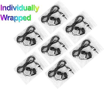 100 Packs Earbuds Bulk Classroom Headphones Wired in Ear Disposable Student Black Earphones Individually Wrapped for School Travel or Home Use 243765
