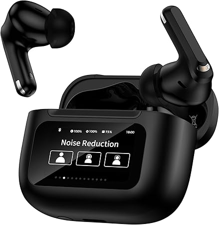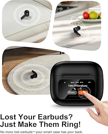 Smart Touchscreen Wireless Earbuds with ANC Noise Cancelling, Bluetooth 5.3 Ear Buds with LED Touch Display Case, 36H Playtime, Hi-Fi Stereo Sound, IPX7 Waterproof Earphones for iPhone/Samsung/Android