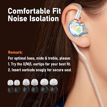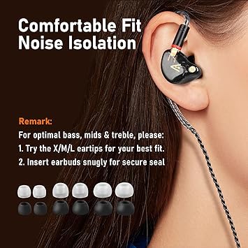 - COMFORTABLE FIT & NOISE ISOLATION - Ergonomically designed to fit the ear canal, Vibes 202 IEM headphones feature preformed over-ear earhooks for a secure fit and keep cables out of the way. With 6 pairs of soft, breathable eartips (in 2 colors and 3 sizes), they ensure optimal comfort and stability while effectively blocking ambient noise for immersive listening.