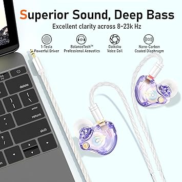- EXCEPTIONAL HIFI SOUND - Equipped with a 1-Tesla powerful driver and master-tuned professional acoustic chambers, the Vibes 202 HiFi in-ear monitor earphones deliver precise and detailed sound across a full frequency range from 8 to 23k Hz. The high-purity, silver-plated, Litz-braided audio cable ensures stable and lossless sound transmission for pure, unaltered audio.