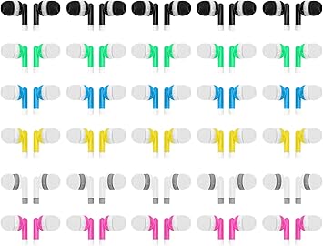108 Packs Bulk Earbuds Classroom Headphones Wired in Ear Disposable Student Earphones Multiple Colors Individually Wrapped for School Travel or Home Use 246739