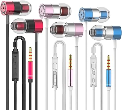 YNR 3 Pairs Metal Wired Earbuds with Microphone & Volume Control, in Ear Earphones for School, Noise Islating, 3.5mm Jack iPhone iPad iPod Samsung Google Devices (Mixed) 247196