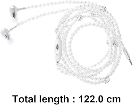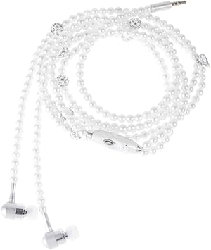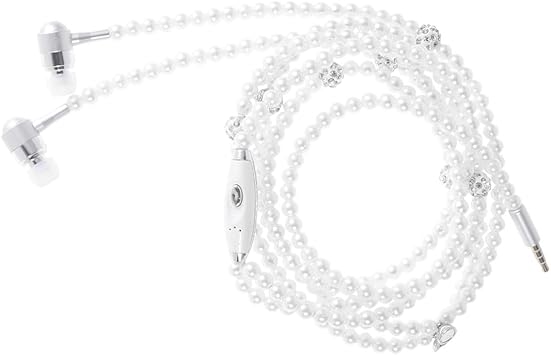 Pearl Chain Design in-Ear Headphones with Mic Wired Earbuds Universal Hands-Free Remote for Sports Travel Gym Use 247718