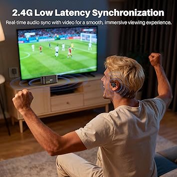 - 2.4G Low Latency Audio: Designed for TV lovers, these wireless earphones for TV listening ensure low latency for perfectly synced sound.