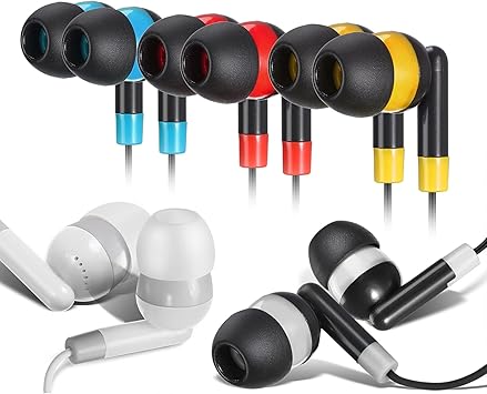 Keewonda Bulk Earbuds Headphones 30 Pack Multi Color for Classroom Kids Students School Disposable Earphones Computers Laptop iPad Individually Bagged 248173