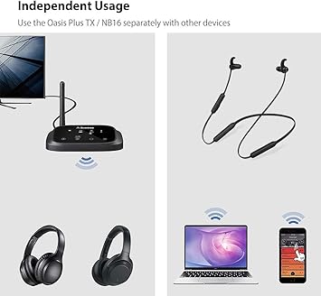 - [WORKS TOGETHER OR SEPARATELY] Designed for versatility, our TV set can be used together or independently. Use the NB16 headphones with your phone, PC or other Bluetooth-enabled devices. And use the Oasis Plus transmitter independently to Bluetooth enable your TV, speakers, etc.