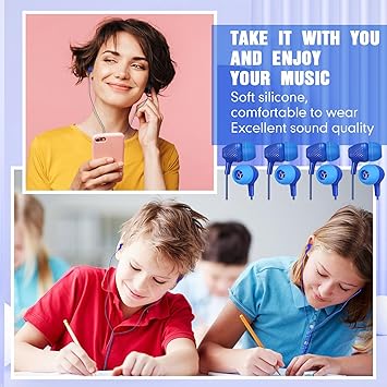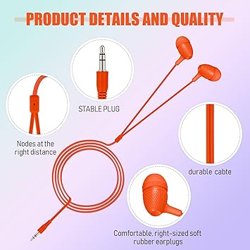 - In the Ear Noise Isolation: these multipack wire earphones provide a nice noise isolation environment for you to enjoy music and video, with soft silicone ear tips and in ear headphones design, approx. 46 inch/ 116.8 cm in length, no built in mic, soft plastic covered cord for extra safety