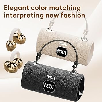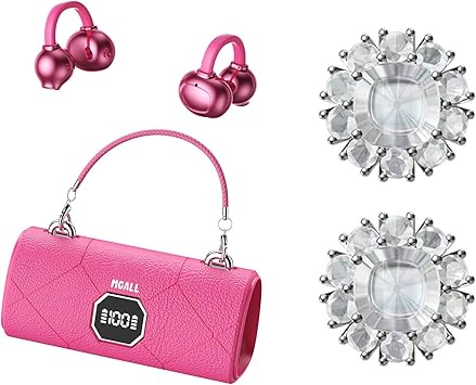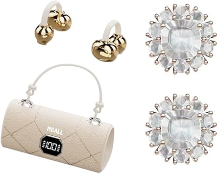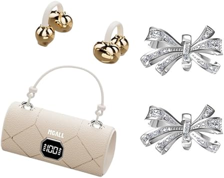 MGALL X22 Fashionable Clip On Wireless Headphones with Handbag‑Style,open ear clip on earbuds,cute Removable Earring Luxury Leather Texture,Bluetooth 6.0,LED HD Display,50H Play,for Women,Beige4