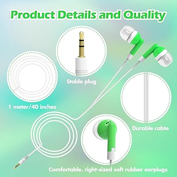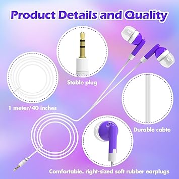 - School earphone,3.5mm Plug works with iPods, iPhones, iPads, Chromebooks, Tablets, Computers, CD Players, Fitness and Audio Equipment