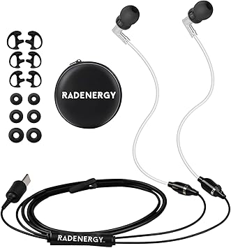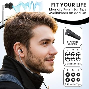 Airtube Headphones, EMF Free Earbuds, Air Tube Headphones with Zipper Bags, 3D Sound, Microphone Volume Control, for Work Meetings, Sleep, Gym, High Audio Quality Devices (USB-C) 250266